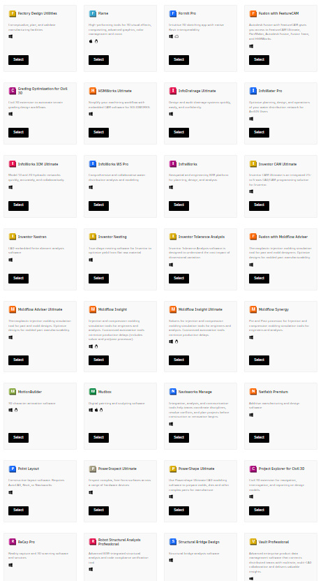 - Manufacturing and engineering (Fusion 360, Inventor, Vault)